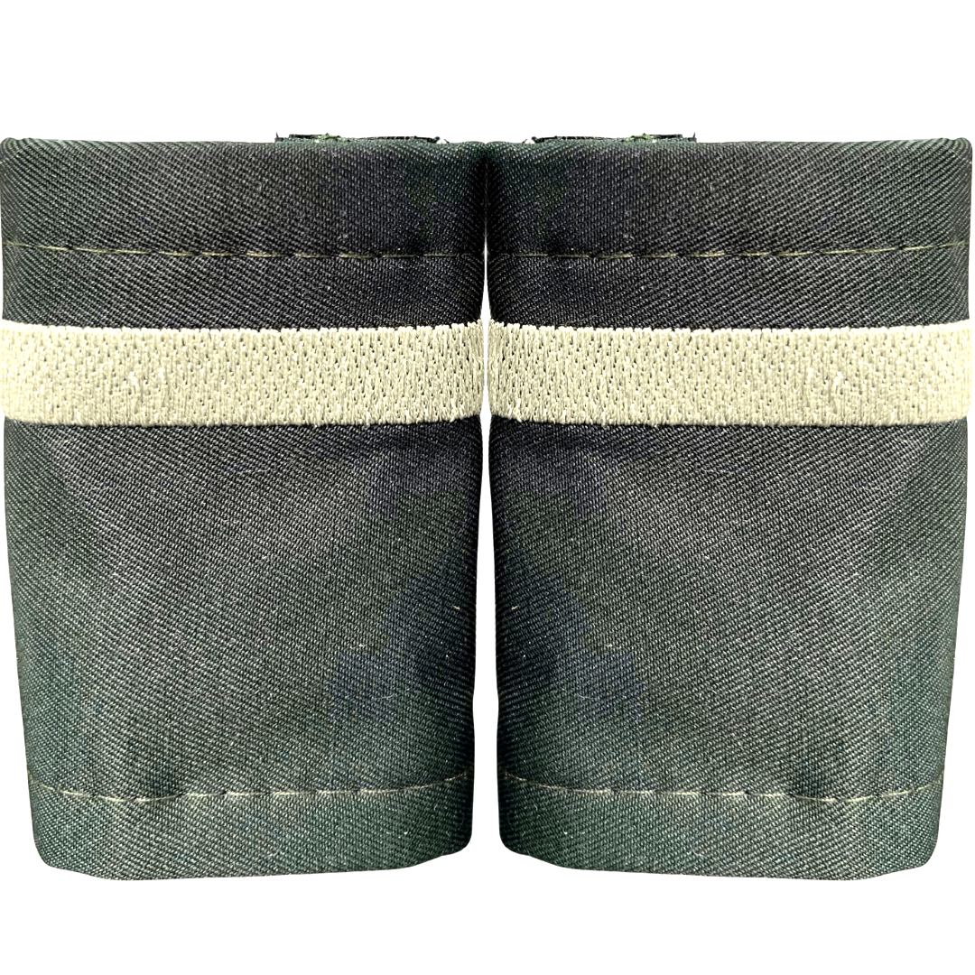 GALÃO NA COR VERDE PETRÓLEO, COM UMA TIRA BORDADA NA COR PRATA.
